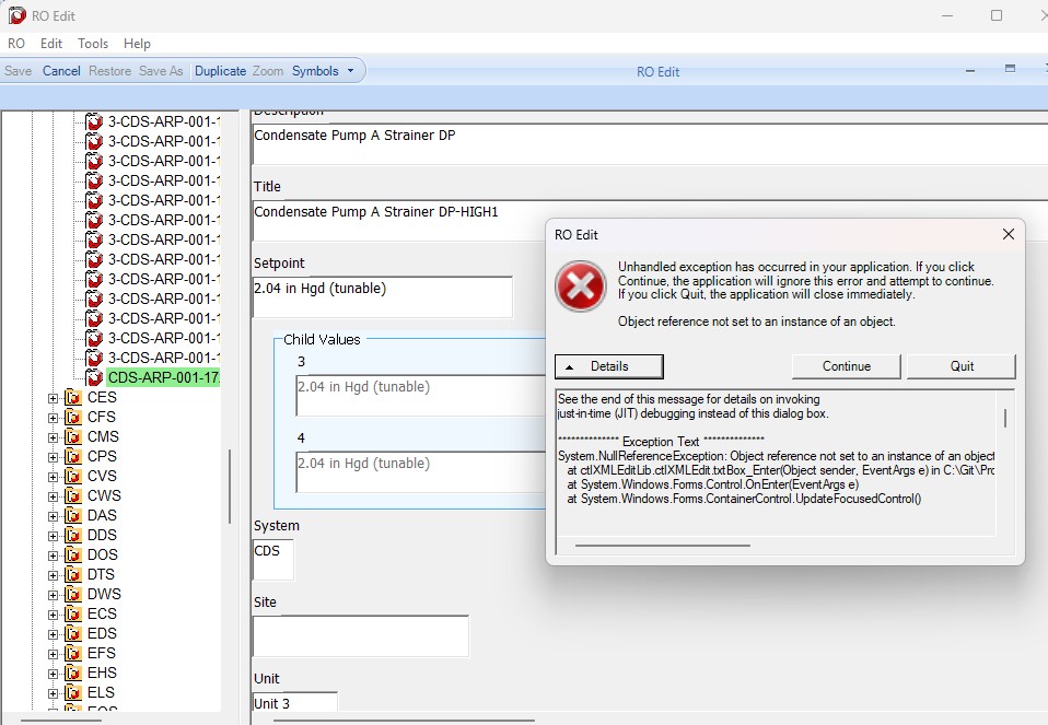 Anyway, for one of the Setpoints with parent child – I clicked inside the Setpoint box, pressed ctrl-a then ctrl-c